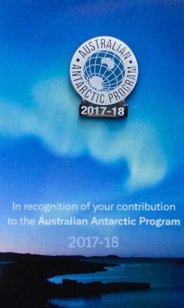 A last curiosity was to file off the ship, have our names checked off at the bottom of the gangway (to ensure no-one stowed away?) and then go by chartered coach a whole 380metres to a venue in the wharf area. There a small ceremony was held and each expeditioner was presented with a badge of the logo of the Australian Antarctic Program. A nice touch and something new for me.