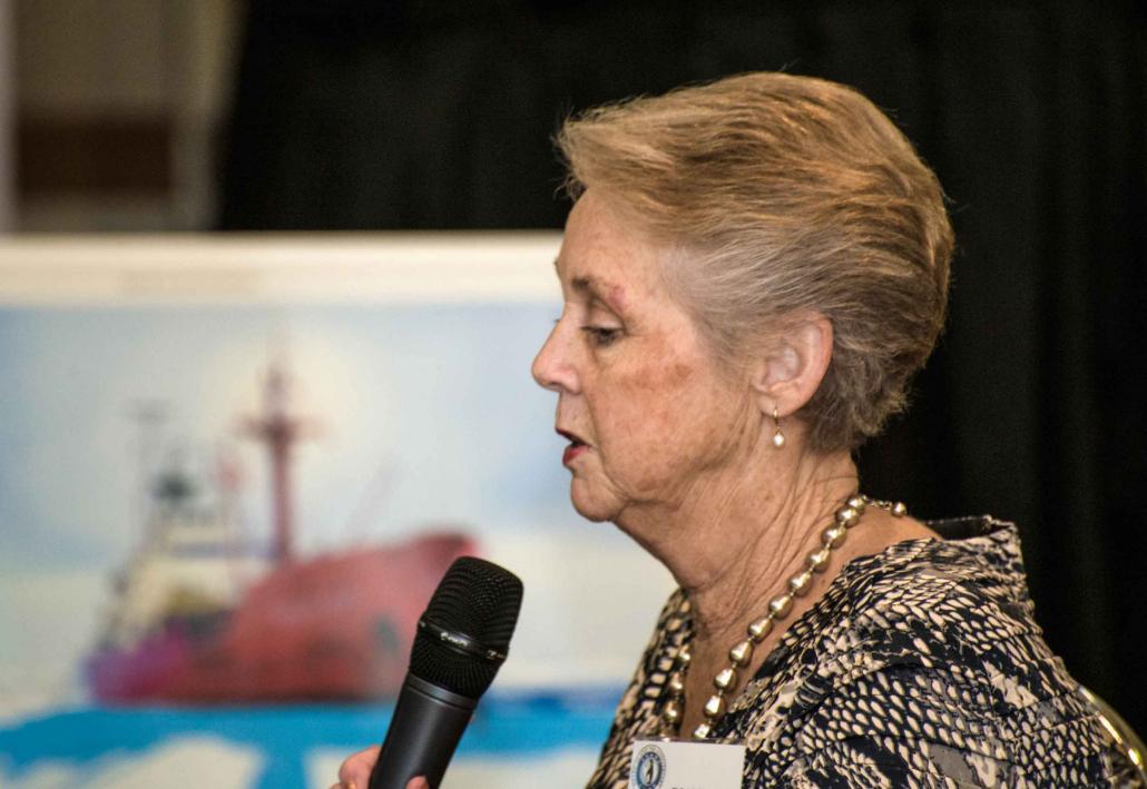 Diane Hampshire presenting her father John Abbotsmith's ANARE pennant to the ANARE Club