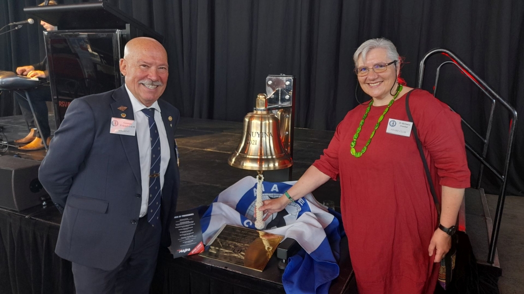During the Reception which followed, guests expressed keen interest in the Bell, which became the centre piece of the exhibits and President George was able to host the Governor General and other dignitaries in showing the Bell and the other presentations being made by the Club to the Captains of the Ship (who regrettable were unable to attend due to COVID restrictions).