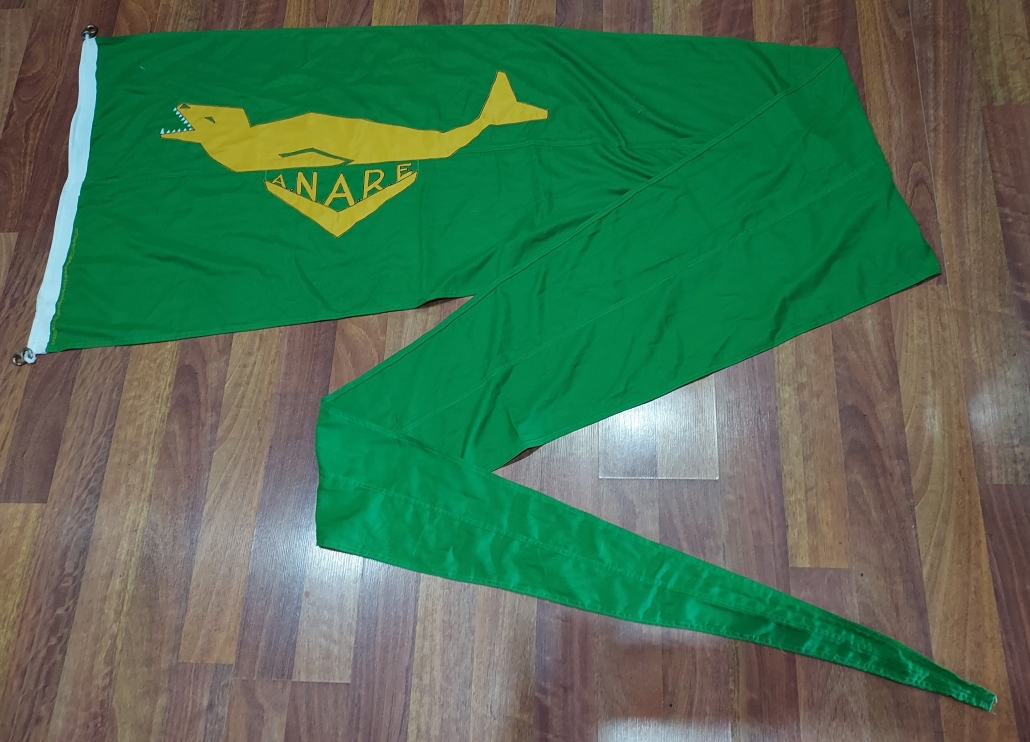 ANARE Pennant with original leopard seal logo. This pennant is 4 metres in length and starts at 720mm tapering to the end.